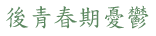 《後青春期憂鬱》是作者首本散文集,主要收錄了他在2014至2024這十年間逾三十篇創作,當中包括了「中文文學創作獎」與「大學文學獎」的冠軍作品。全書共分四輯:「空谷回音」收錄低鳴不息的生命回聲;「烈日灼身」烙印直面外在世界的不適;「紅牆綠袖」交織校園裡的暗湧與柔光;「風鈴碎語」撿拾日常細屑,在呢喃中串起記憶之聲。作者以其敏感的犄角,觸碰成長時期的舊患,為他由青年轉為成人這階段,留下許多記憶的註腳。
